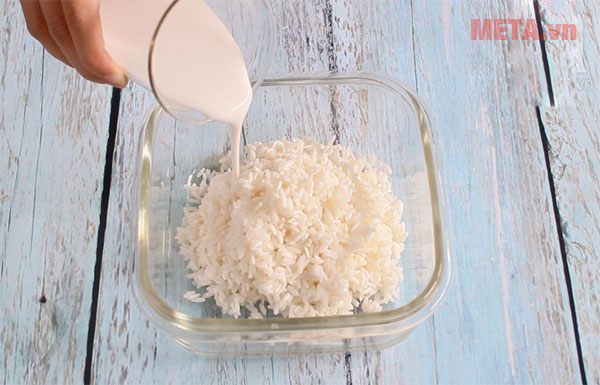 Lưu ý: Tùy độ hấp thụ nước của nếp mà bạn có thể cho 80ml nước cốt dừa vào trước, phần còn lại cho vào sau để tránh xôi bị nhão.