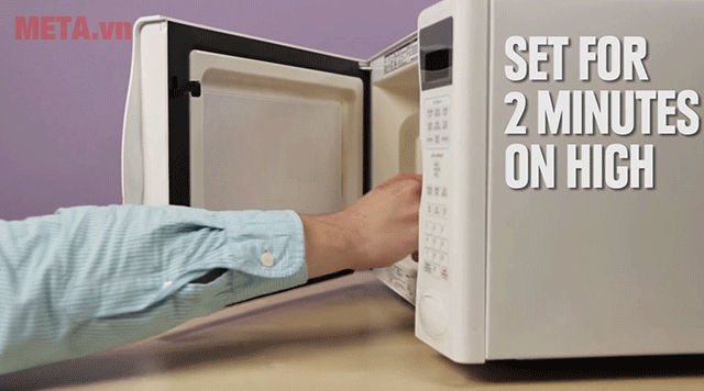 - Chỉ đơn giản vậy thôi, giờ thì hãy đặt vào lò vi sóng, cài đặt mặc định chế độ 2 phút nhé!