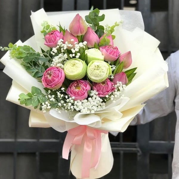 >> Tham khảo: Hoa sen cưới có ý nghĩa gì? Cách bó hoa sen cầm tay cô dâu đẹp, đơn giản