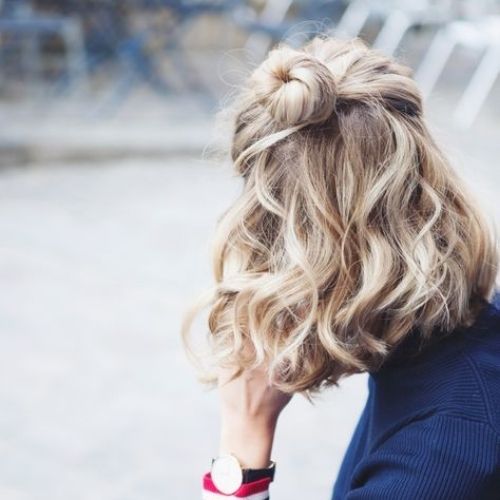 Bạn chỉ cần chải gọn một nửa tóc ở phía trên sau đó dùng dây chun cố định lại. Nếu thích biến tấu một chút, bạn có thể búi thành búi nhỏ, xoắn ngược lại hoặc kết hợp với các loại ruy băng, kẹp nơ để mái tóc trông thật nổi bật. Kiểu tóc này cũng không hề kén mặt nên hầu như ai cũng có thể để được.