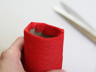- Bước 3: Quấn phần giấy gói quà xung quanh mặt lõi giấy vệ sinh rồi nhét phần giấy thừa vào bên trong cuộn giấy.