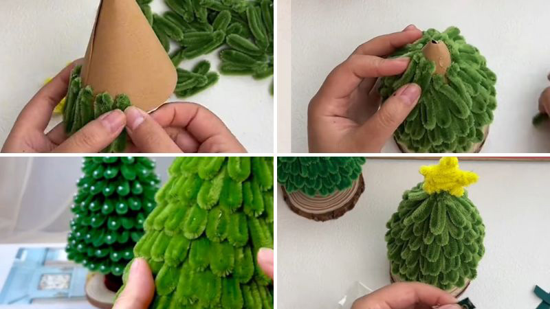 Hướng dẫn làm cây thông noel bằng kẽm nhung