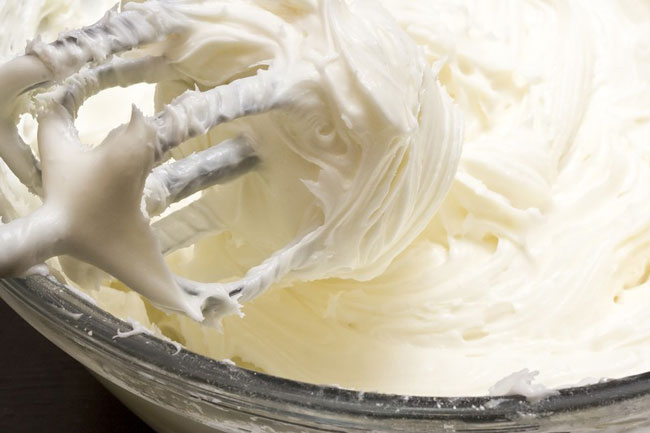 - Tiếp theo, bạn thêm đường bột vào, trộn đều rồi cho tiếp phần sữa tươi vào, đánh đều cho phần kem được bông, mịn, ngon.