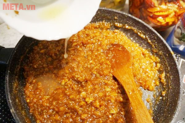 Sên đều tay, liên tục phần kẹo trong khoảng thời gian từ 20 – 30 phút. Lúc này, kẹo chuối sẽ ở dạng hơi sền sệt. Bạn vẫn tiếp tục khuấy kỹ và đều tay để đảm bảo kẹo chuối không bị cháy, nhất là ở đáy nồi.