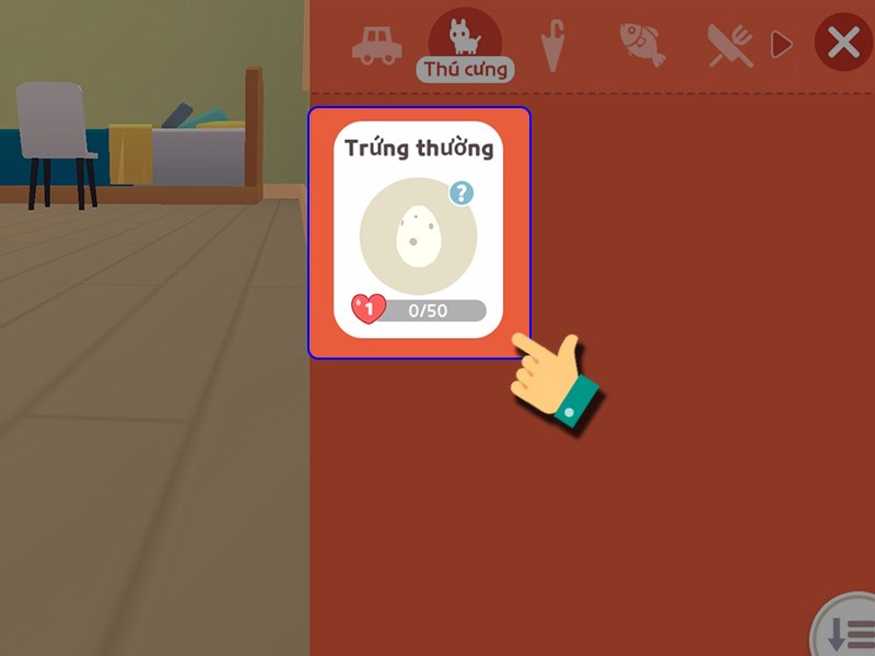 Bước 4: Nhấp vào yêu cầu của trứng thú cưng trong chuồng, sau đó chọn túi thức ăn đặc biệt dành cho thú cưng. Chỉ cần 5 giây sau là trứng thú cưng có thể nở được.