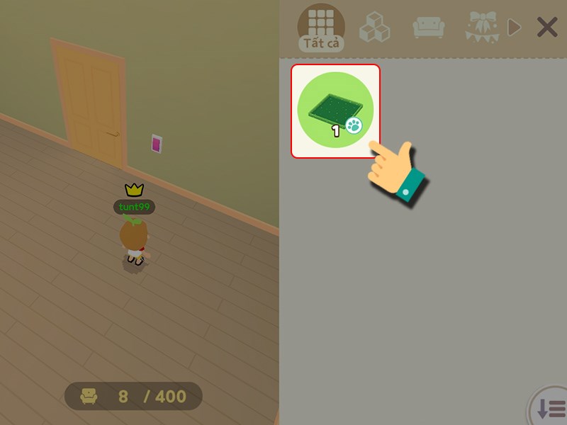 Bước 1: Vào trong nhà của bạn và nhấn vào biểu tượng thú cưng ở Hàng rào thú cưng.