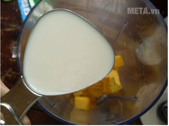 Đổ tiếp sữa vào và bật máy xay lần nữa cho nhuyễn đều các nguyên liệu, tạo thành hỗn hợp sánh mịn thì được.