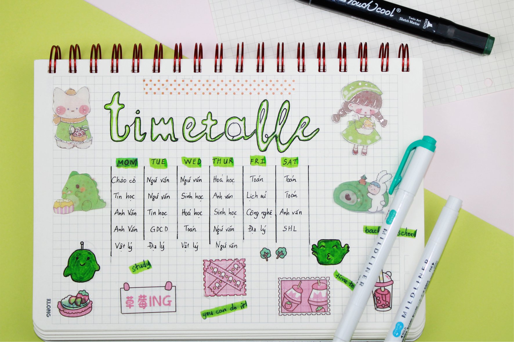 Trên đây là cách làm thời khóa biểu bằng giấy A4 mà chúng tôi muốn chia sẻ với bạn. Ngoài cách trang trí này, bạn cũng hoàn toàn có thể sử dụng bảng vẽ điện tử, máy tính bảng... và các phần mềm vẽ để vẽ trên máy tính sau đó in ra thành thời khóa biểu để sử dụng cũng rất đẹp.