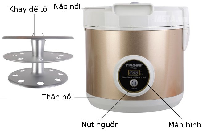 Tiross TS908 6 lít công suất 90W tiết kiệm điện, làm tỏi đen từ 8 - 12 ngày. Được sử dụng với khối lượng tỏi trắng tối đa cho mỗi lần lên men là 1 - 1,5kg.
