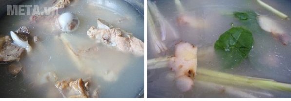Với xương heo bạn hãy rửa sạch, luộc qua nước sôi rồi đổ nước đầu đi, sau đó thay nước và đun sôi khoảng 1 giờ đồng hồ (càng kỹ càng tốt).