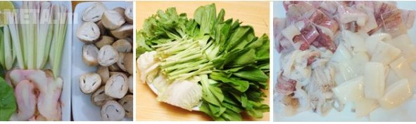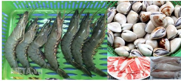 - Hải sản gồm: Mực, ngao, tôm, mực (số lượng tùy người ăn)