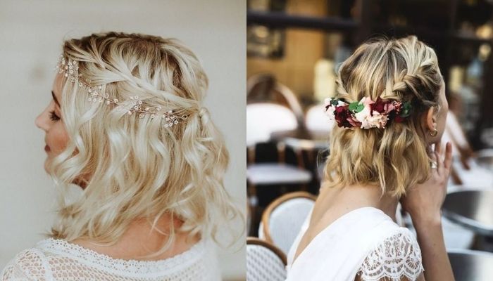 Các kiểu tết tóc ngắn dễ thương được điểm xuyết bằng ghim cài tóc hoa lá trông vừa tự nhiên, vừa có chút "hoang dã" sẽ khiến bạn tự tin hơn trong các bữa tiệc ngoài trời đấy!