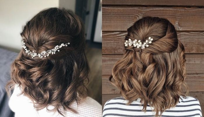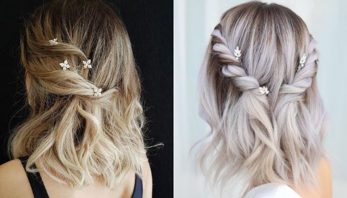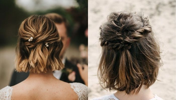 Những cách tết tóc ngắn đơn giản như thế này rất phù hợp với những chiếc đầm ren cầu kỳ trong các bữa tiệc cưới, prom...