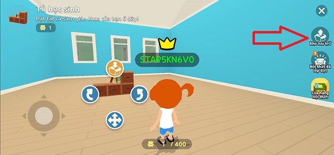 Bước 11: Nhấp vào biểu tượng mũi tên để di chuyển hoặc xoay hướng đồ vật mà bạn muốn đặt để trang trí nhà trong Play Together.