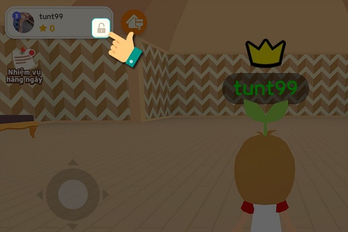 Bước 12: Nếu không muốn người lạ vào nhà, bạn nhấn vào biểu tượng ổ khóa ở góc trái màn hình bên cạnh avatar của bạn. Chọn Khóa hoặc Chỉ bạn bè -> Nhấn Lưu cài đặt là xong.