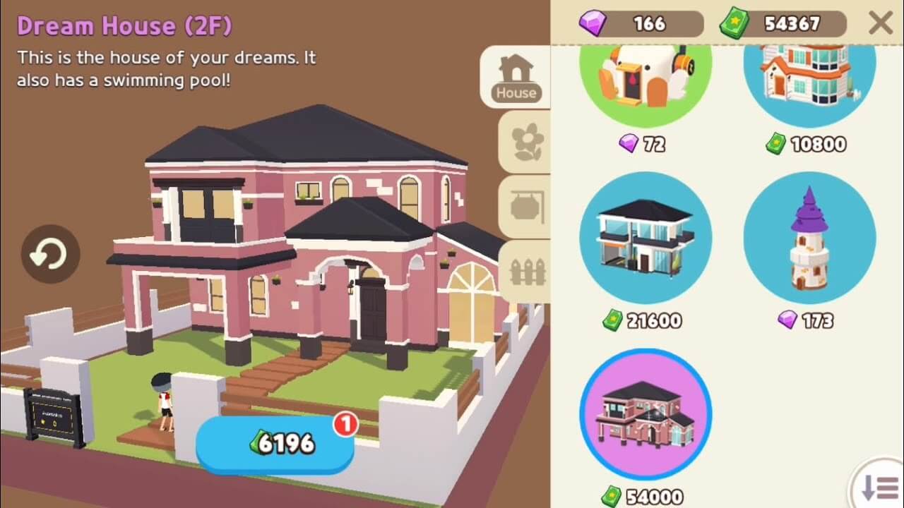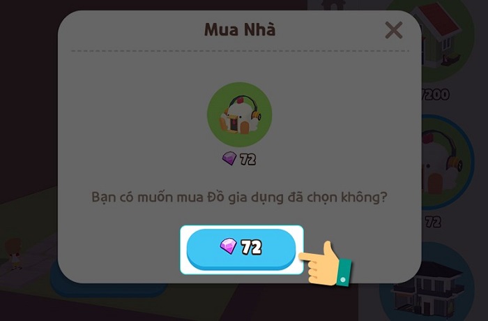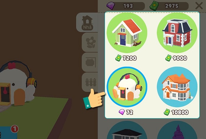Bước 3: Chọn ngôi nhà muốn mua và nhấn vào số tiền cần thanh toán. Có đầy đủ mức giá từ 10K, 21K đến 54K hoặc mua bằng đá quý, bạn hãy chọn ngôi nhà phù hợp với số tiền bạn có để sau đó có thể mua thêm nội thất nữa nhé!