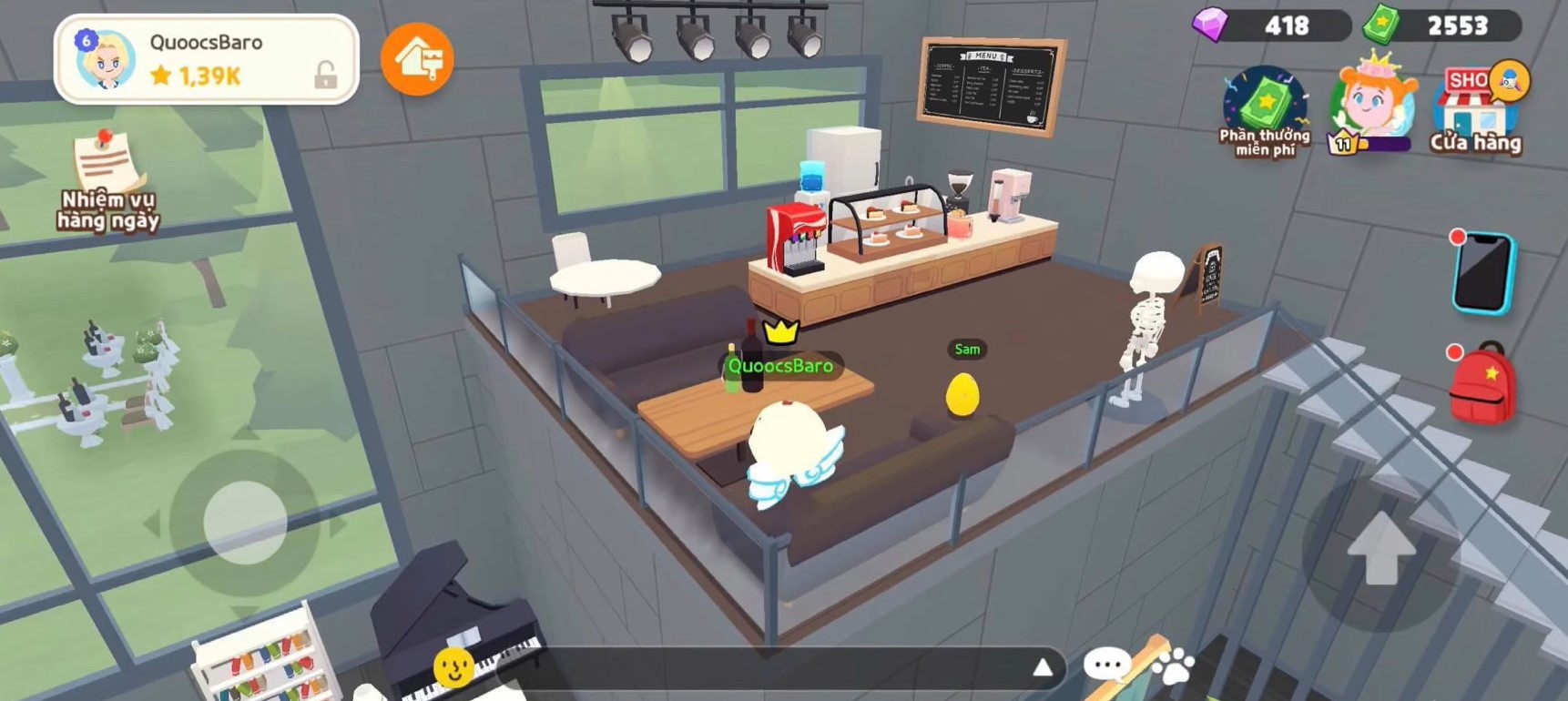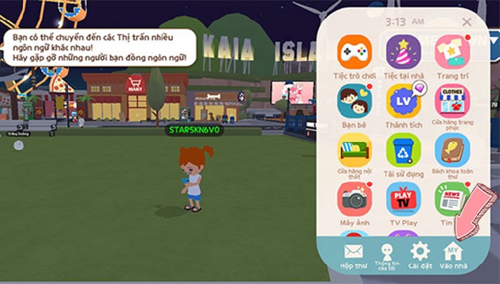 Bước 1: Trong giao diện chính của game, bạn nhấp vào biểu tượng chiếc điện thoại di động -> chọn Vào nhà.