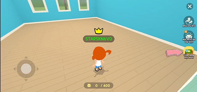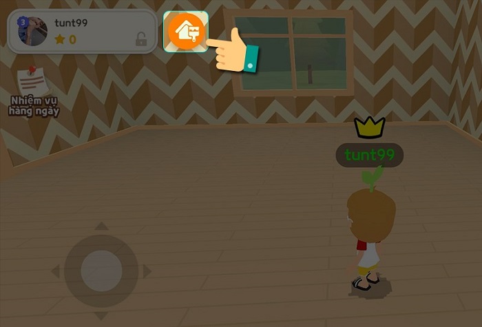 Bước 5: Sau khi hoàn tất mua nhà, hãy vào trong và bắt đầu khám phá nhé! Tuy nhiên, trong nhà ban đầu sẽ không có bất kỳ vật dụng trang trí nào. Bạn muốn trang trí nhà hãy tiếp tục nhấp vào biểu tượng chỉnh sửa ngôi nhà ở góc trái màn hình.