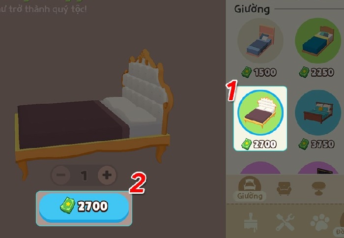 Bước 7: Tại Cửa hàng nội thất, hãy chọn bất kỳ các món đồ mà bạn muốn mua và nhấn vào số tiền để thanh toán.