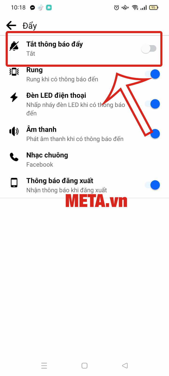 Nhấn vào Thanh gạt Tắt thông báo đẩy về vị trí Tắt