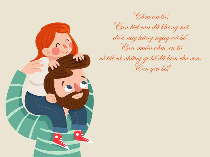 - Con xin gửi đến bố lời cảm ơn chân thành nhất. Cảm ơn bố đã luôn âm thầm hi sinh và dành cho con những điều tốt đẹp nhất. Chúc bố có một ngày kỉ niệm thật vui vẻ và ý nghĩa. Happy International Men's Day!