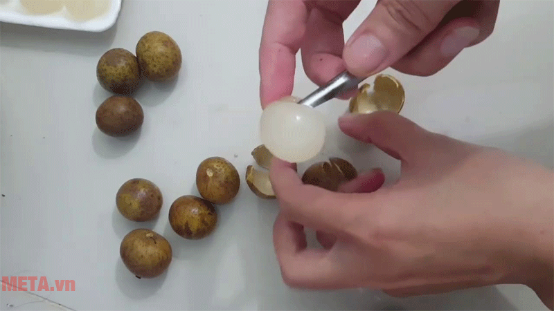 Tách phần cùi nhãn ra khỏi vỏ và hạt