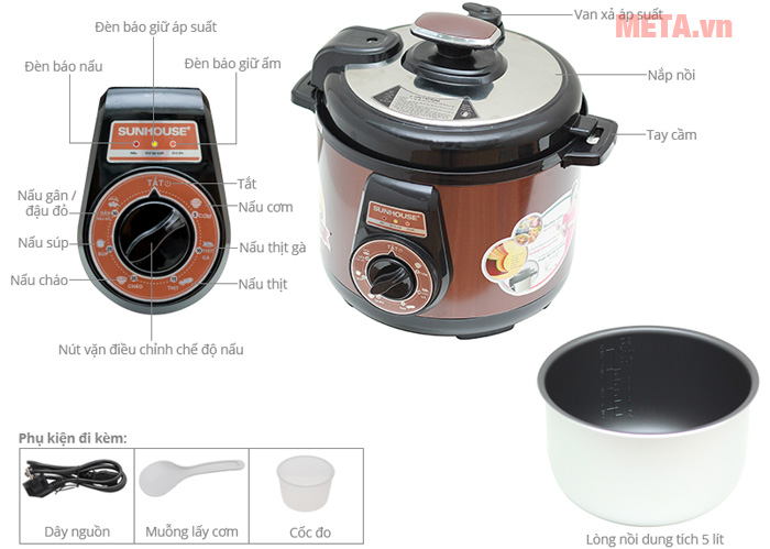 1. Nồi áp suất điện đa năng Sunhouse SHD1552 (5 lít) - giá tham khảo [$GIA:35390]đ