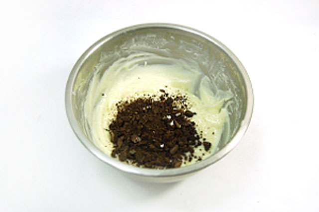 Bước 4: Cho tiếp 1 phần bánh quy vào trộn với hỗn hợp phô mai.