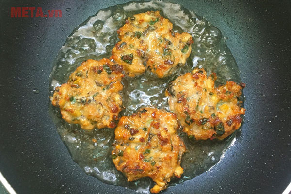 - Bắc chảo lên bếp, đợi cho dầu ăn sôi, sau đó cho chả vào rán vàng đều 2 mặt là được.