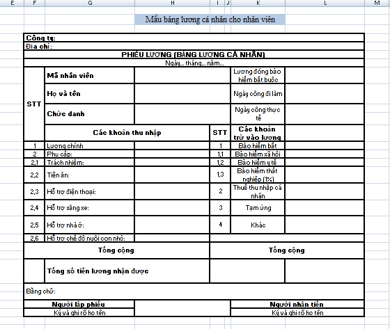 Dưới đây là mẫu bảng lương cá nhân đơn giản và đầy đủ mà chúng tôi muốn chia sẻ đến bạn.