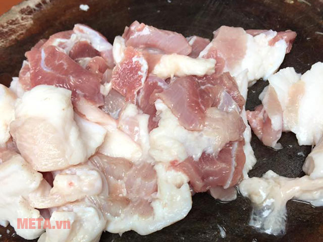 Bước 3: Phi hành khô thơm, cho thịt vào xào ngấm gia vị: mắm, muối, sau đó cho nước ngập mặt thịt, đun sôi, để nhỏ lửa, hớt bọt. Đun khoảng bao nhiêu cho thịt nhừ rồi cho mộc nhĩ nấm hương đã xào vào.