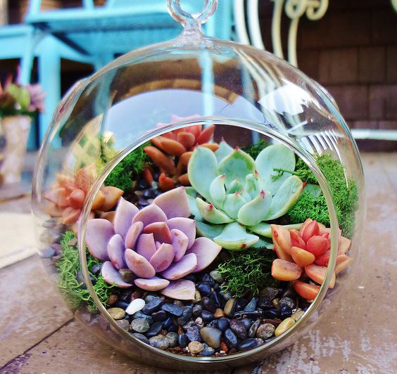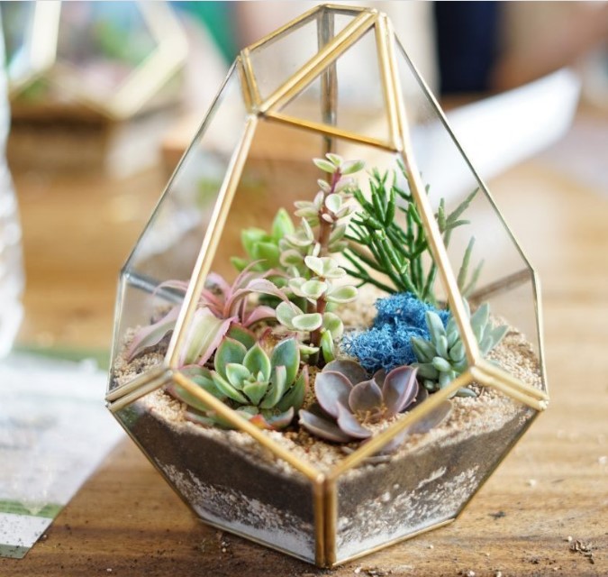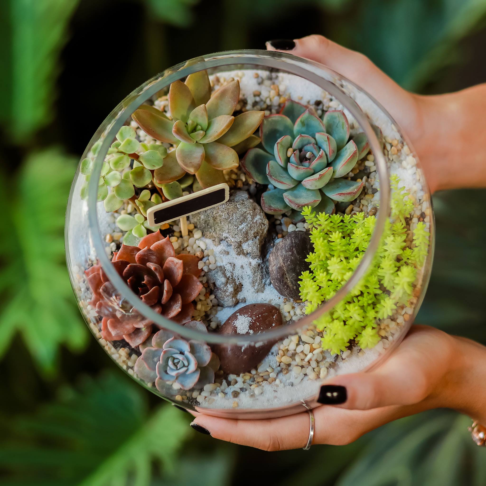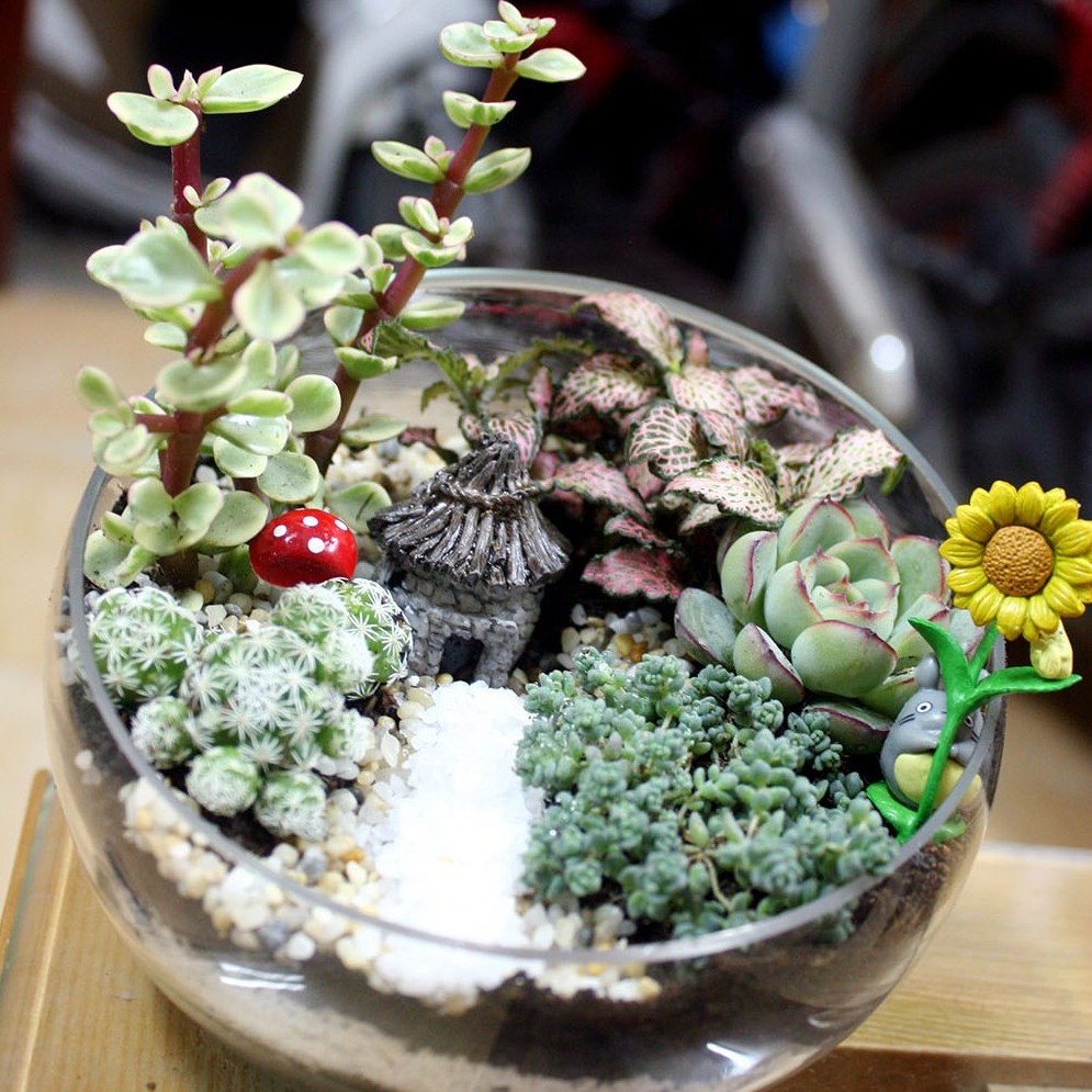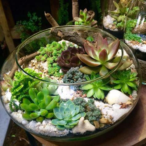 - Tiểu cảnh Terrarium: Tiểu cảnh Terrarium sen đá là cách trồng sen đá vào bình thủy tinh.
