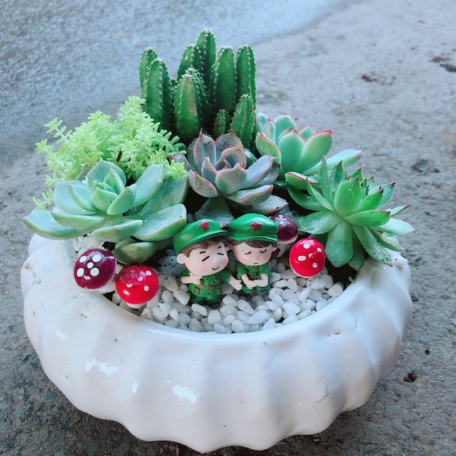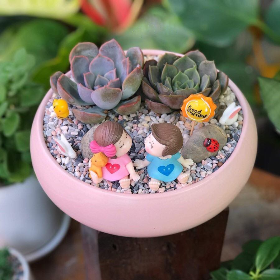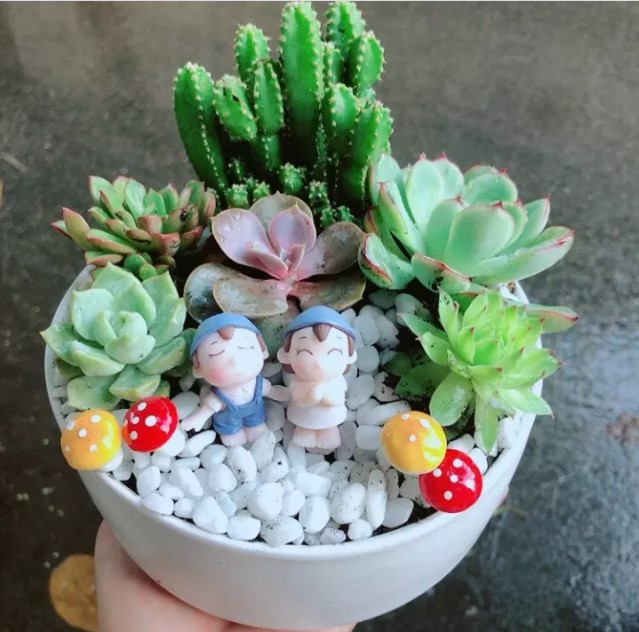- Tiểu cảnh khác: Là các tiểu cảnh với chậu cây làm từ nhiều chất liệu khác với thiết kế độc đáo như hình các nhân vật hoạt hình, chậu hình khủng long, chậu động vật...