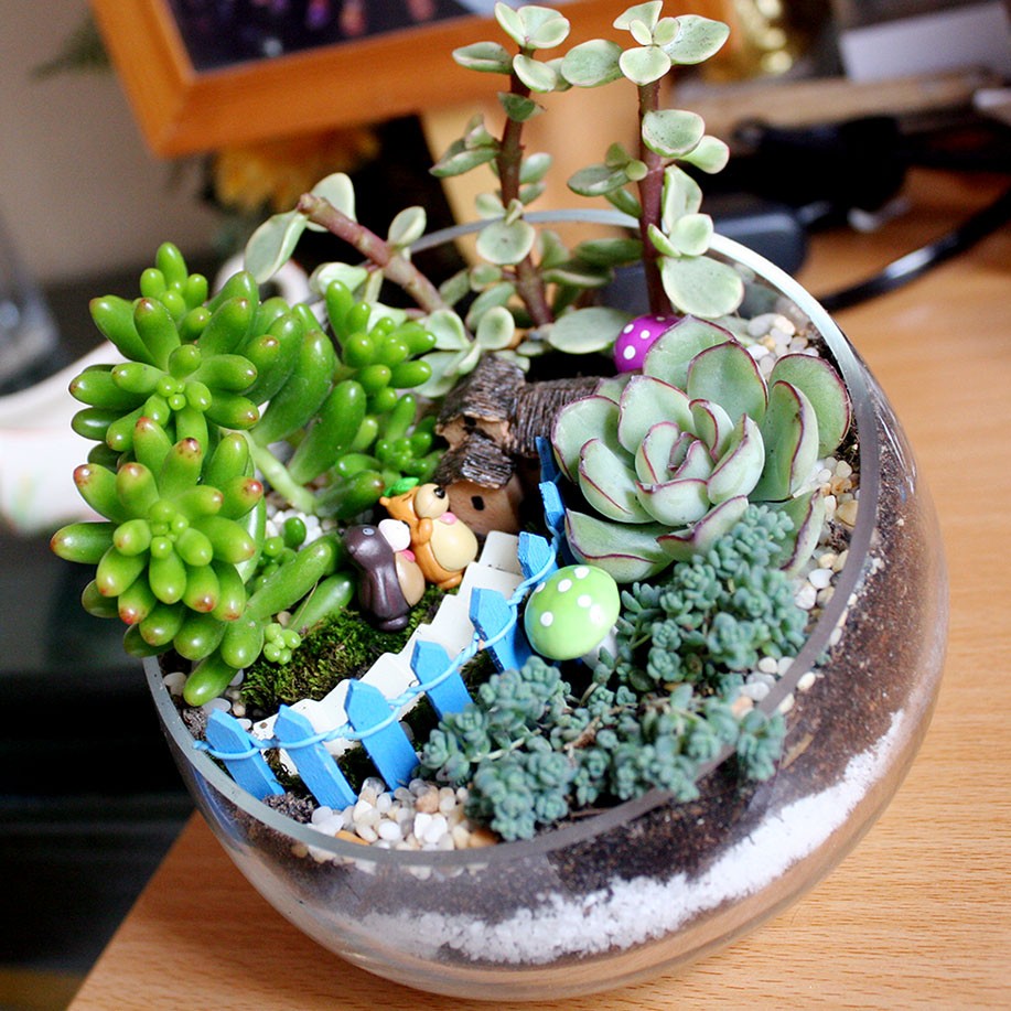 - Các phụ kiện: Sỏi, đá, nhà, chú bé, cừu, suối, bảng tên, cây, nấm, bóng bay... có thể lựa chọn tùy ý nhưng không nên dùng quá nhiều làm tổng thể tiểu cảnh bị rối, trông không đẹp mắt.