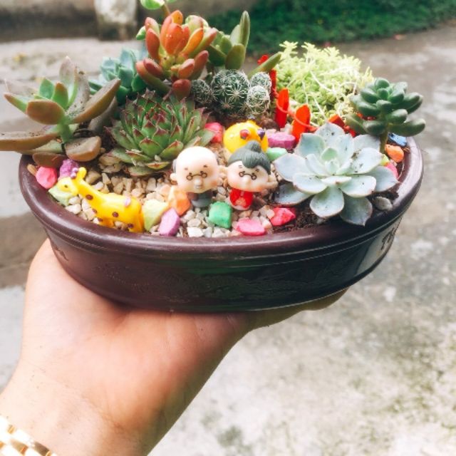 - Chậu tiểu cảnh: Yêu cầu quan trọng nhất cho 1 chậu trồng sen đá tiểu cảnh chính là khả năng thoát nước tốt. Khi bị ngập úng cây rất dễ bị úng lá, thối rễ và có thể bị chết.